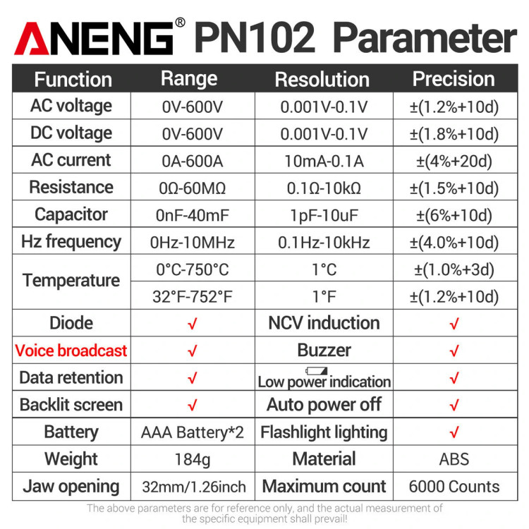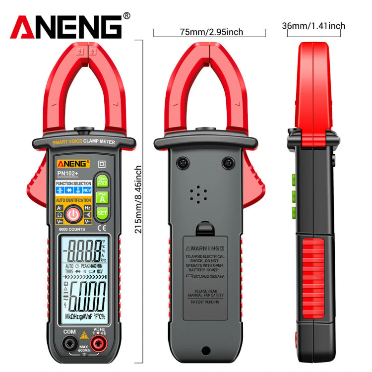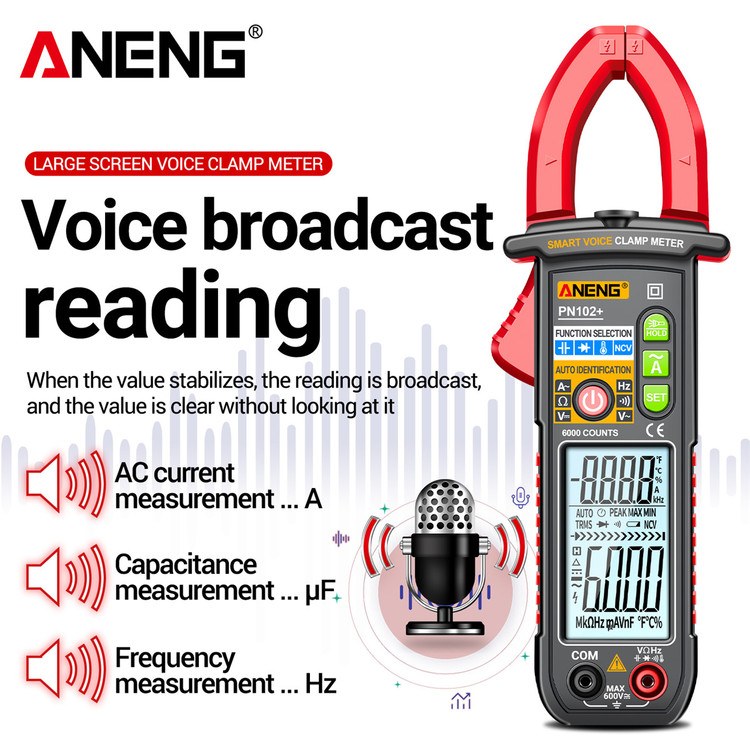 آمپرمتر کلمپی مولتی متر با دستیار صوتی ANENG مدل PN102 پلاس