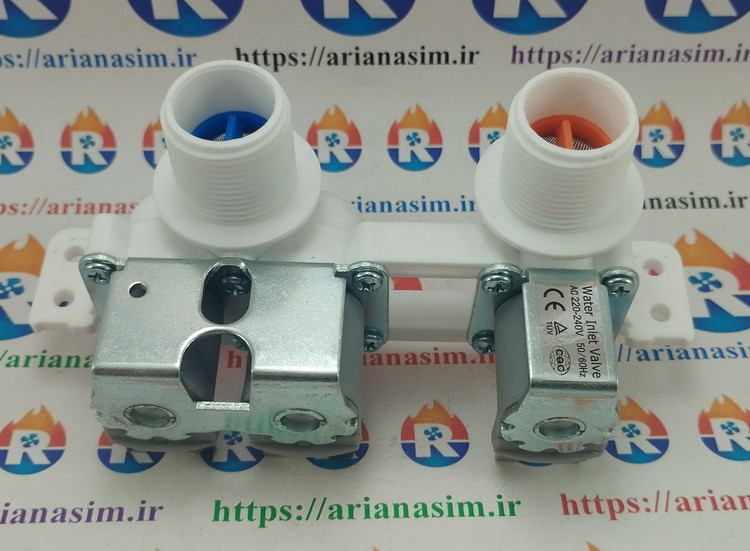 - شیر برقی دو بوبین: این مدل شیر برقی از دو بوبین و دو مسیر برای ورود آب برخوردار است. در ماشین لباسشویی های جدید معمولا از شیرهای برقی دوقلو یا سه قلو استفاده می گردد.