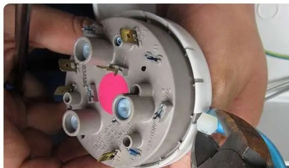 در این صورت مشکل از پلاتین ها است که پلاتین های مربوط به تغذیه موتور تایمر در هیدروستات وصل نمی شود. می توانید با دمیدن در لوله ورودی هیدرواستات عملکرد پلاتین های هیدروستات را مورد بررسی قرار دهید و اگر این روش جوابگوی راه حل شما نبود و مشکل شما حل نشد، در این صورت هیدروستات ماشین لباسشویی باید تعویض شود.